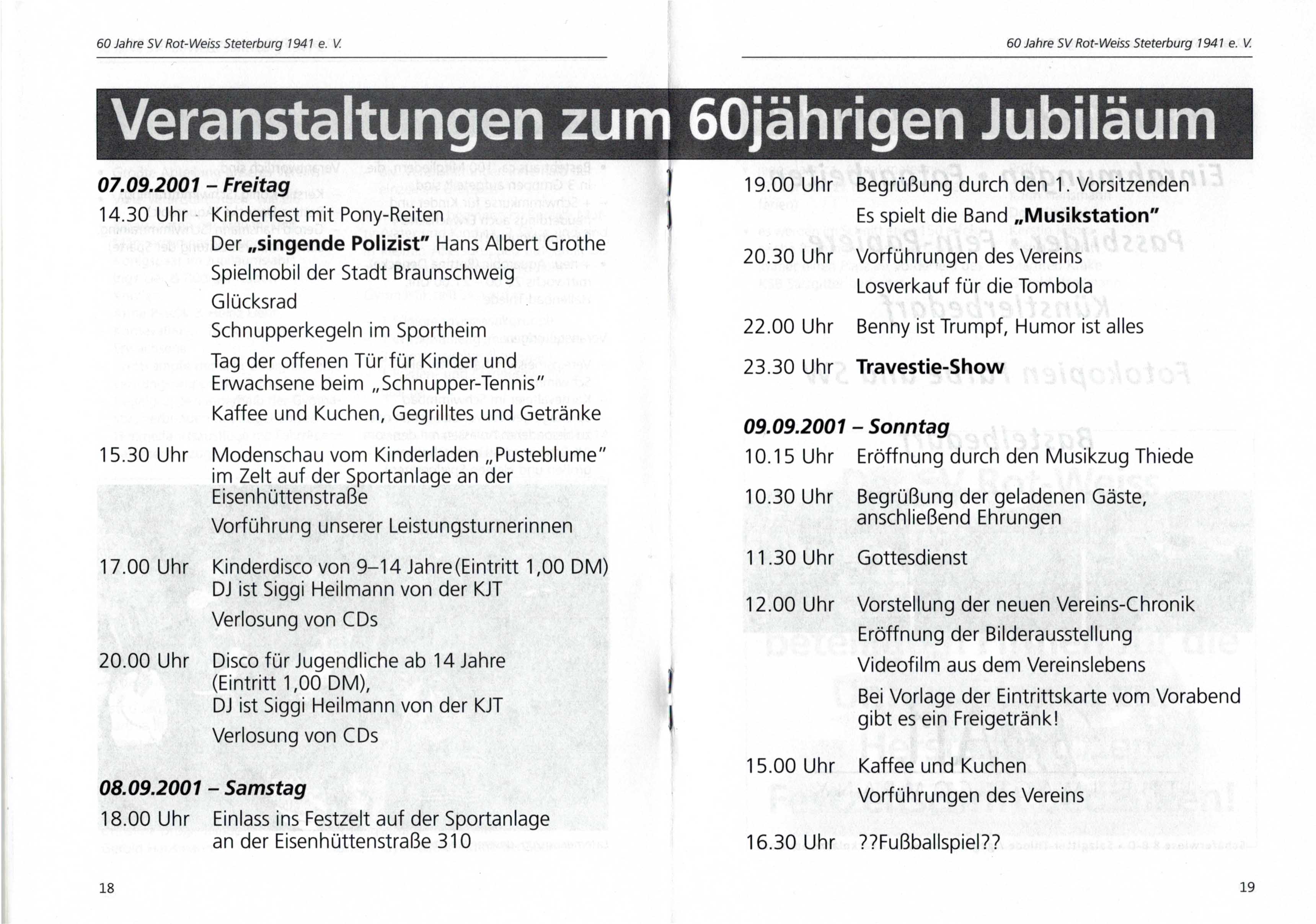Vom 7. bis 9. September 2001 feierte der Verein Rot-Weiß Steterburg sein 60. Vereinsjubiläum.